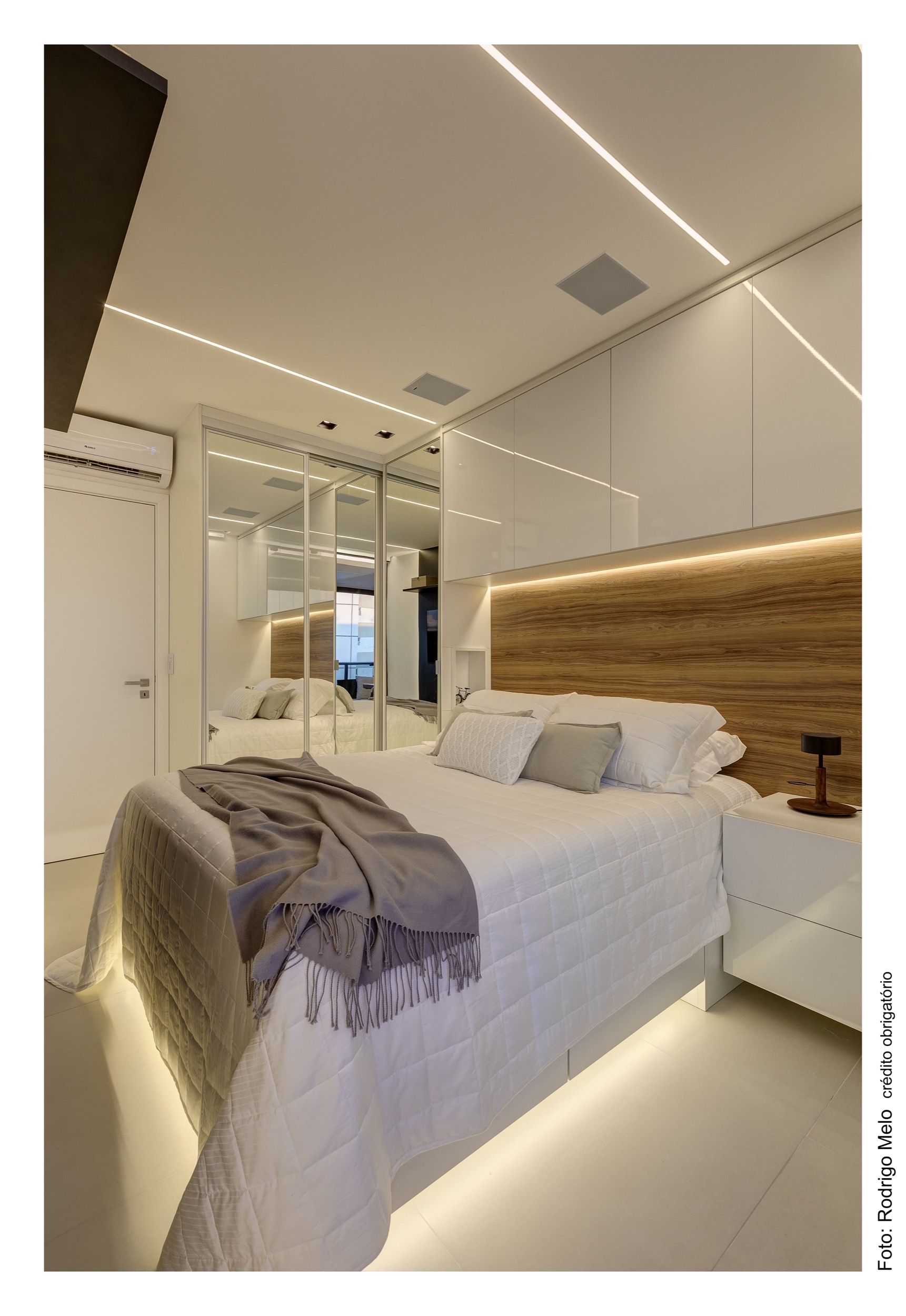 Duetto Graça Quarto e sala com soluções criativas para melhor aproveitamento e armazenamento que espaços reduzidos necessitam. Tons em preto, branco e madeira são a base desse apartamento masculino.